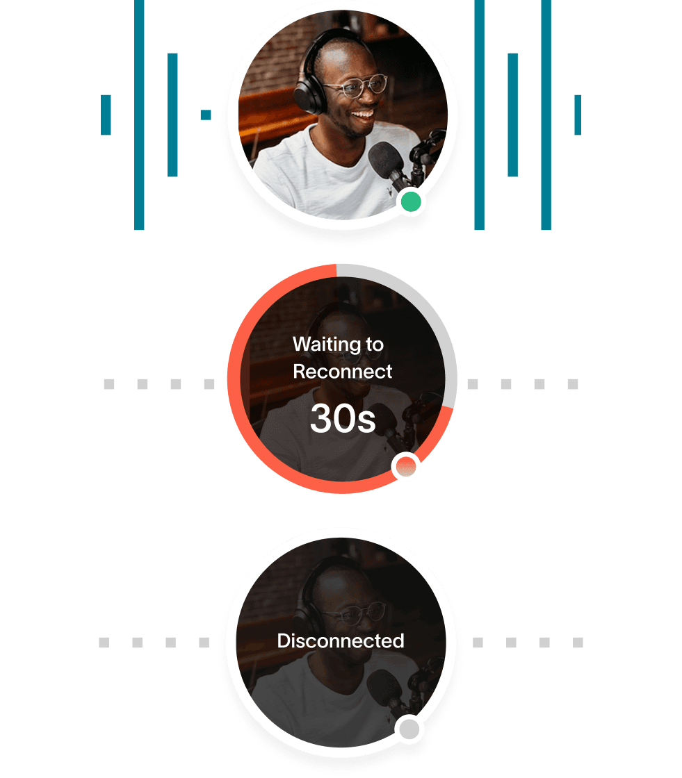 By providing the user the visibility status of their call, reduces the frustration caused by wifi instability. Notification indicators such as connectivity alerts; identify when there were connectivity problems and provide users the opportunity to reconnect within a 30 second time frame builds reassurance and trust in Anyone’s application.