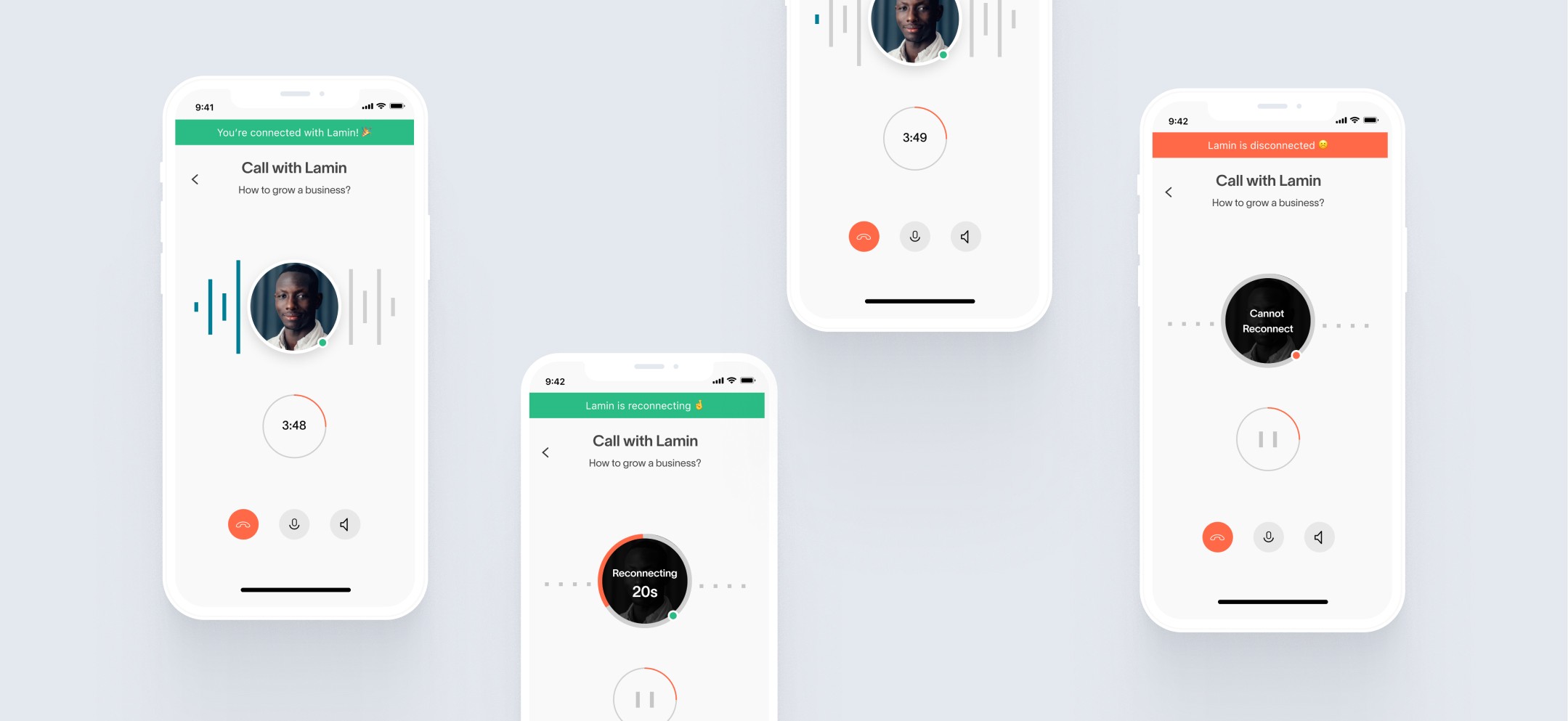 In Anyone app there were no alerts to indicate there is a problem with the calls connectivity. Through user testing we saw calls dropped with no indication there was a bad connection.